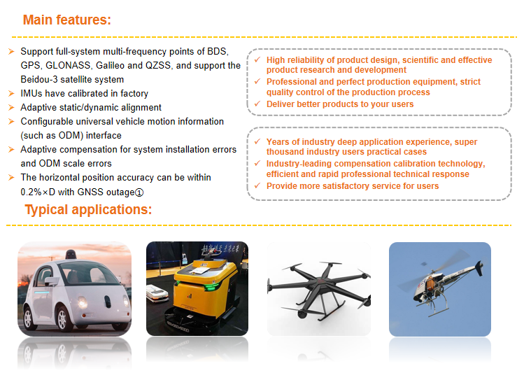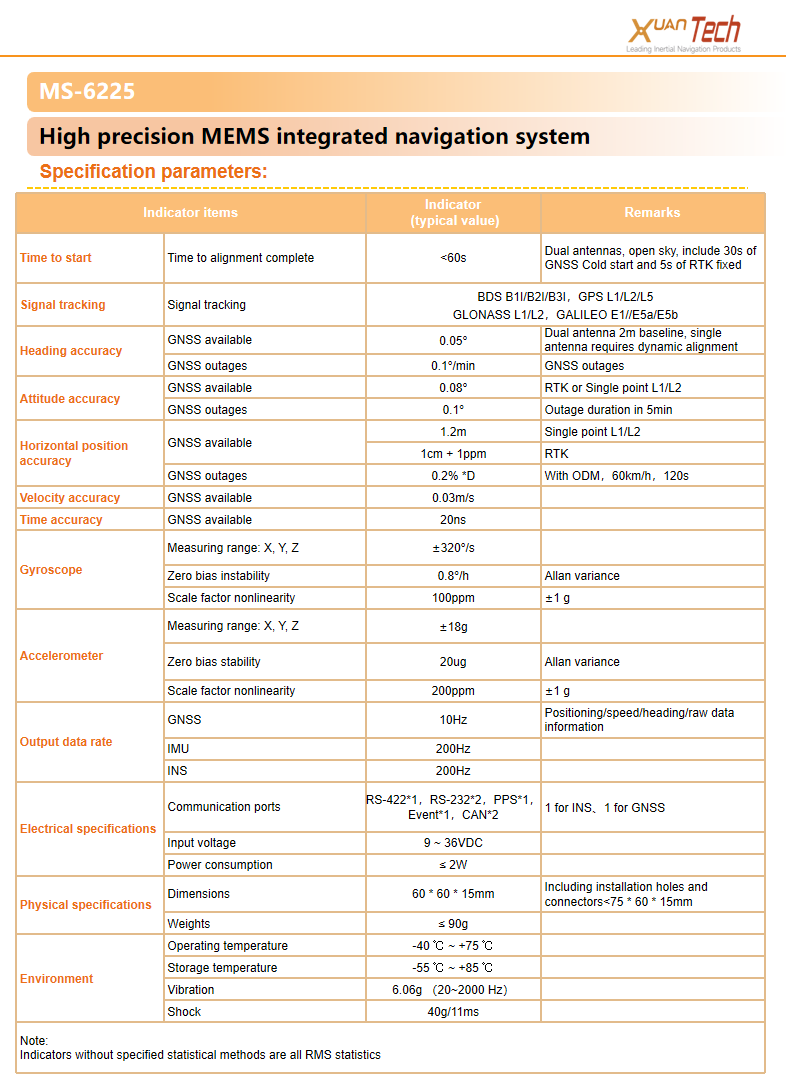The MS-6225 contains a high-precision GNSSmodule and a factory calibrated llU, so that it couldcontinuously provide high-precision information onposition, velocity, and attitude at high frequencyEven in challenging conditions such as urbancanyons,shaded areas, and tunnels, The MS-6225will also keep available and self-evaluated reliabilityby empowered with several algorithms such asmulti-source kalman filter