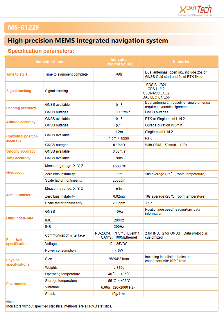 MS-6122F is a module-level MEMS combined navigation system. The built-in MEMS inertial measurement unit and high-precision dual-antenna GNSS use multi-source fusion Kalman filter algorithm, which can provide continuous and reliable high-precision positioning and navigation information in complex environments. The product is widely used in satellite communication, UAV, surveying and mapping, intelligent driving and other fields.