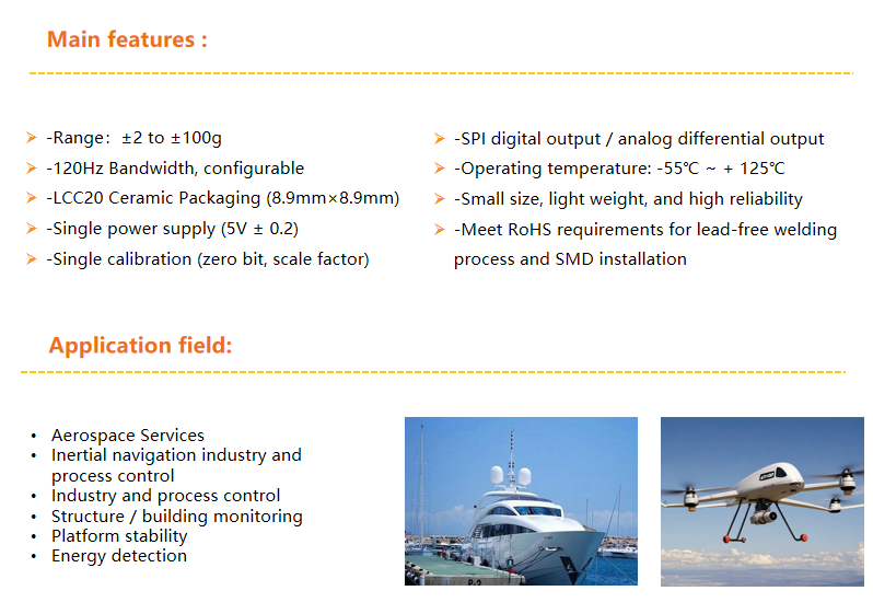 The XUAN-Accelerometer series is a uniaxial capacitanceMEMS accelerometer composed of all-silicon MEMSsensitive structure and low power signal processing ASlC.